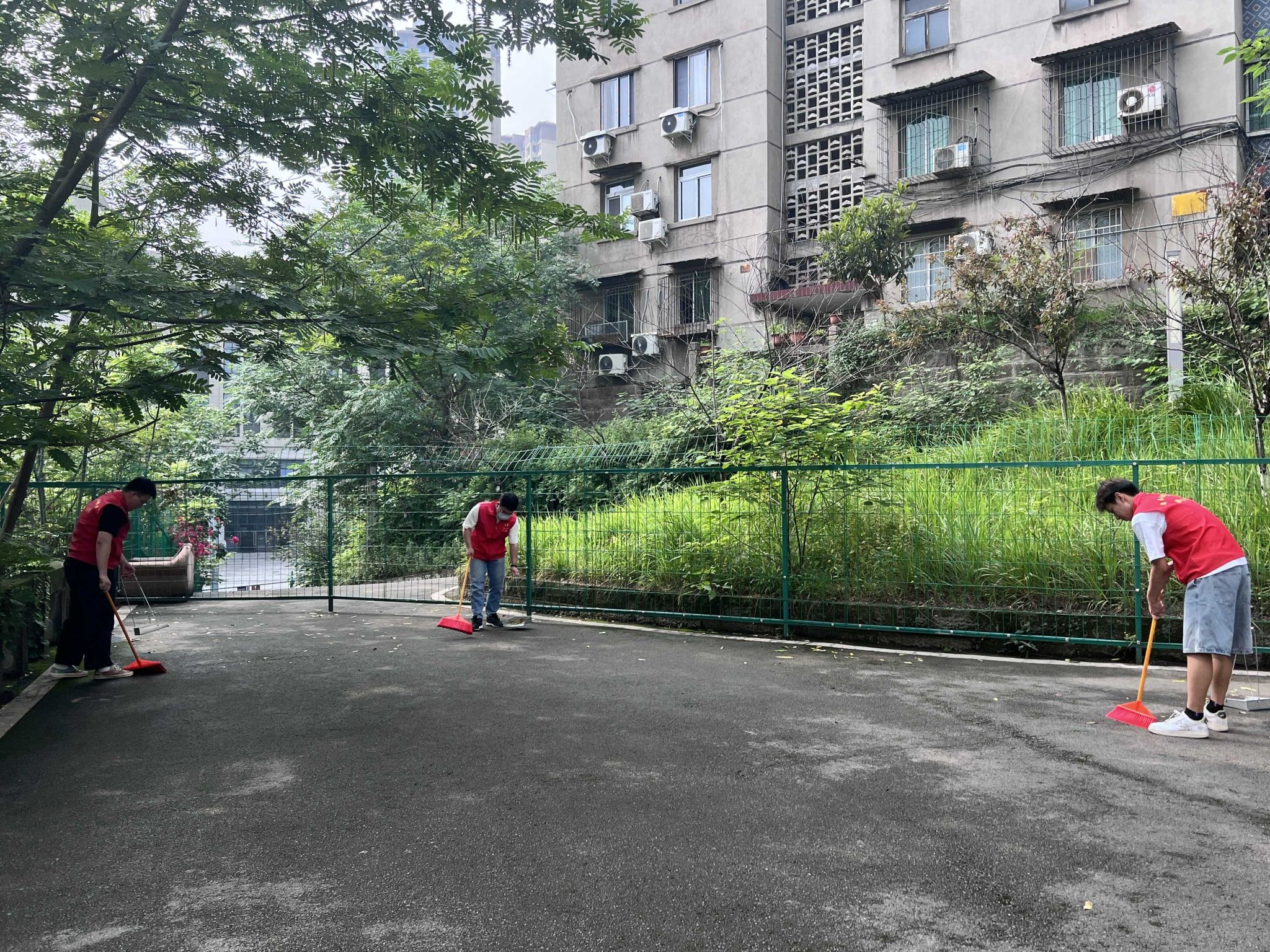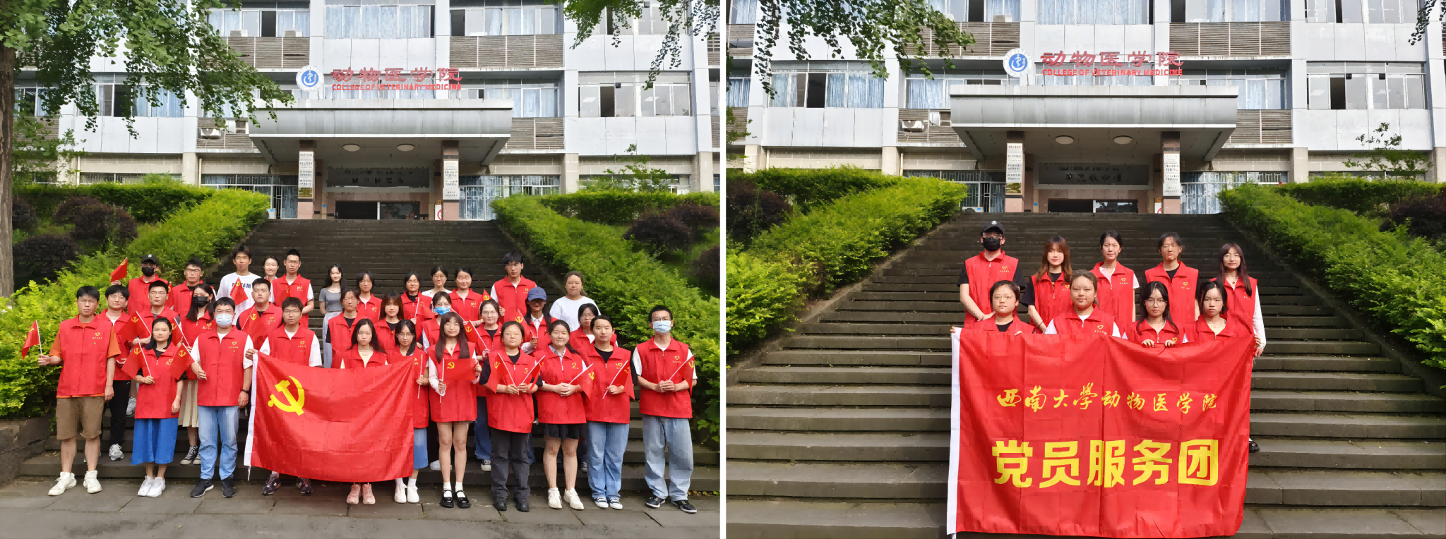 党员服务团联合本科生第一、第二党支部,组织成员于荣昌校区第三教学楼前空地开展了美化校园志愿清扫活动。