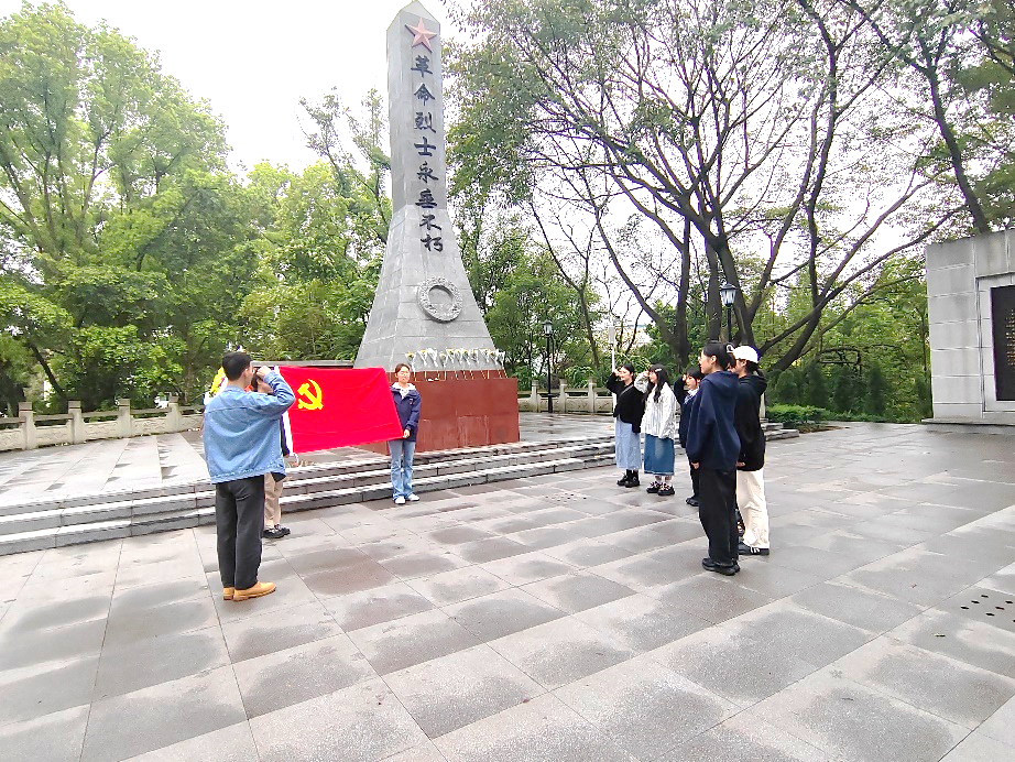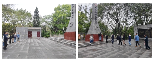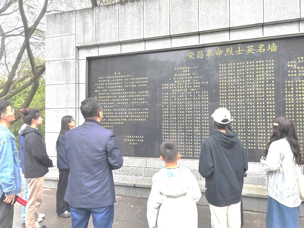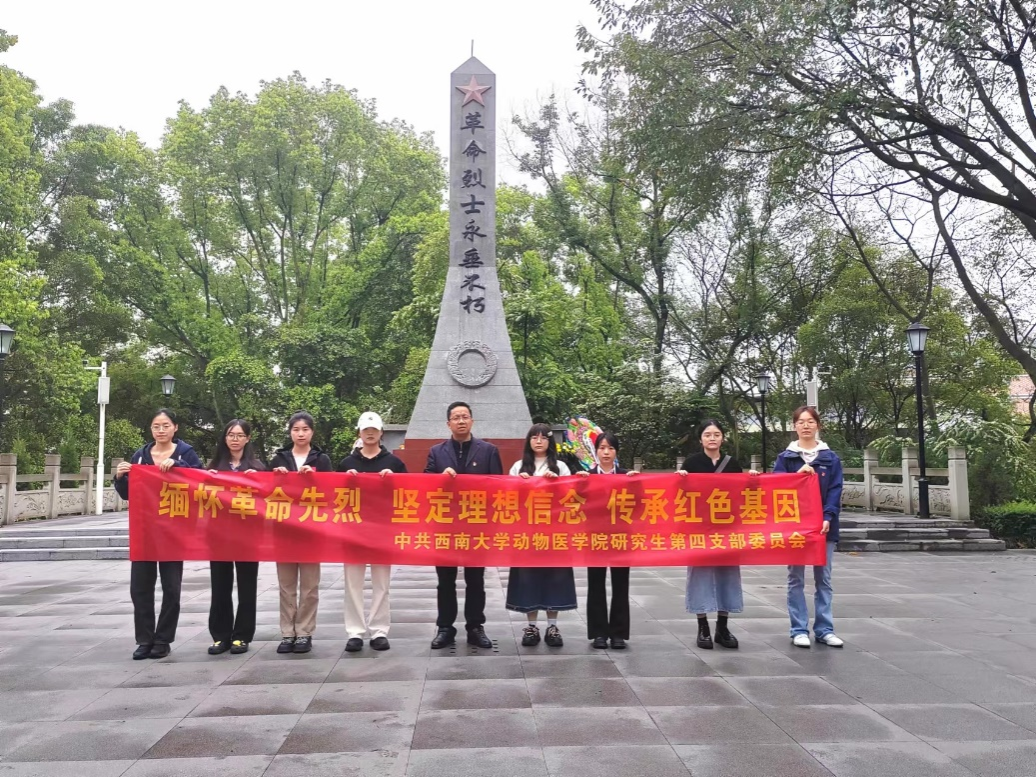 研究生第四党支部书记易华山,支委吴婵玉、马成军组织支部党员、入党积极分子代表前往荣昌区海棠公园革命烈士陵园,开展“缅怀革命先烈,坚定理想信念,传承红色基因”主题党日-“铸魂•2024•清明祭英烈”活动。