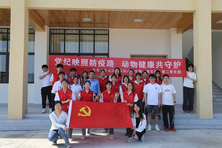 本科生第一党支部、第二党支部和大学生党员服务团赴重庆市荣昌区直升镇万宝村开展以“党纪映照防疫路 动物健康共守护”为主题的党日活动,51风流