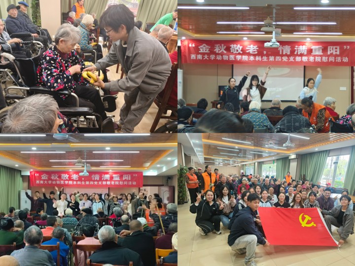 本科生第四党支部为进一步强化党员党性教育,促进党员队伍建设,于2024年10月13日在重庆市荣昌区昌元昌州街道敬老院举办了一场以“金秋敬老,情满重阳”为主题的敬老院慰问活动。