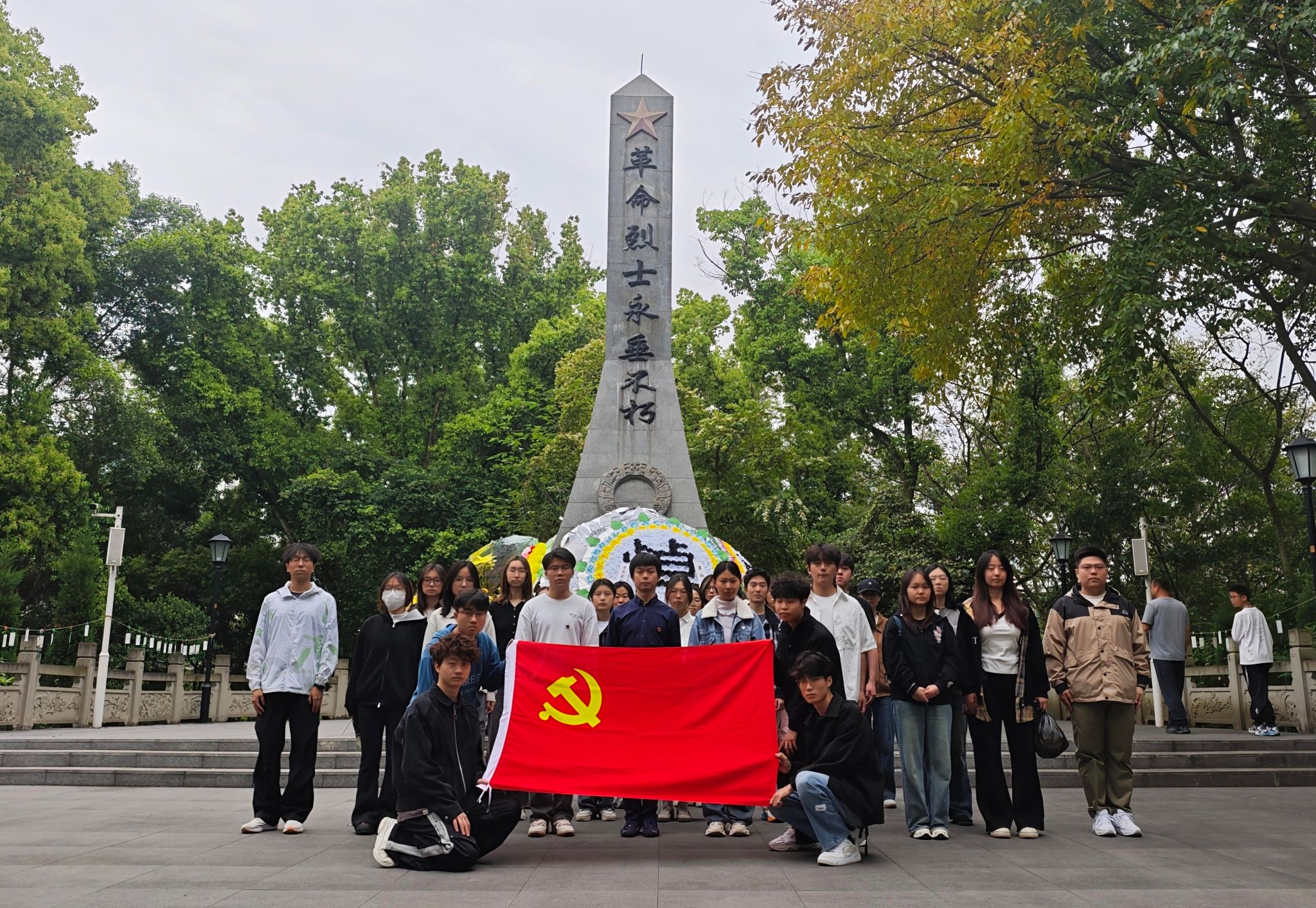 在庄严肃穆的烈士纪念碑前,全体师生肃立默哀,向为民族独立和人民解放英勇献身的革命先烈致以深切哀思。随后集体三鞠躬并依次敬献鲜花,朵朵白菊静置碑前,寄托无限崇敬与永恒追思。