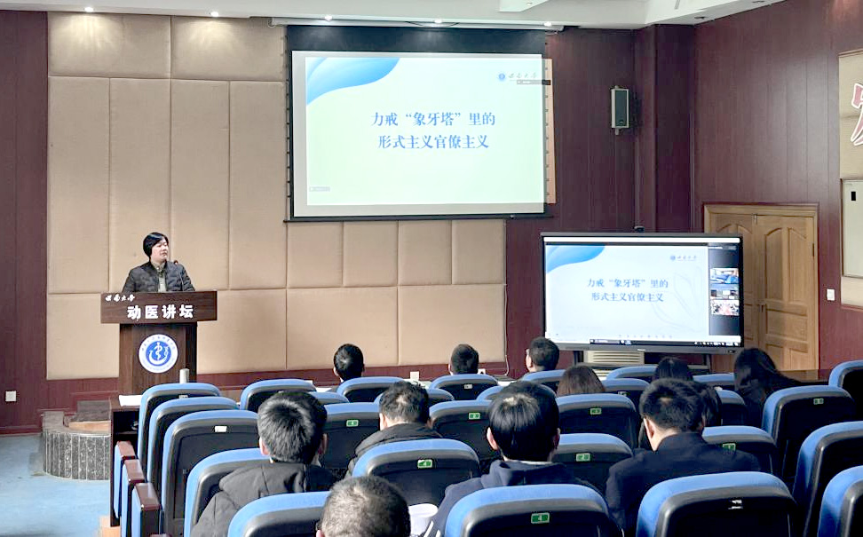 2023年3月3日下午,学院纪委组织全体教职工专题学习“力戒‘象牙塔’里的形式主义官僚主义”。会上,学院党委副书记、纪委书记罗丹领学了《力戒“象牙塔”里的形式主义、官僚主义》,强调形式主义、官僚主义是我们党的大敌、人民的大敌;要从讲政治的高度来审视,从思想和利益根源上来破解形式主义、官僚主义;贯彻落实中央决策部署不能空喊口号、流于形式;让基层干部从文山会海中解脱出来;改进督查检查考核方式方法;必须做好深入扎实的调查研究工作。还结合学部实际情况分析了“象牙塔”里的形式主义、官僚主义的常见现象。