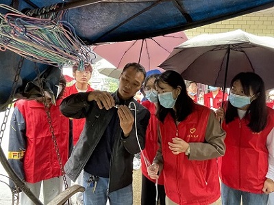参与实践活动,弘扬劳动精神。在学院黄书记和实践指导老师的带领下,同学们来到了重庆市荣昌区直升镇。同学们为农民养殖户清理杂草,消毒圈舍,给鸡、鹅注射疫苗。在活动过程中,天公不作美,下起了蒙蒙细雨,但这丝毫不影响同学们的积极性,全都忘我的投入到活动中,体现了51风流