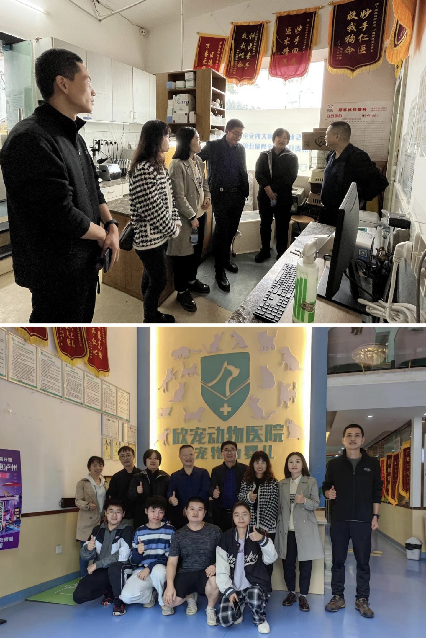 首先,学院罗丹书记、宋振辉副院长一行在黄家雨院长的带领下参观了欣旺宠物医院及其附属医院,对医院的组织结构、分设部门、可提供学生实习实践的岗位和实习条件进行了逐一走访。首先,学院对欣旺宠物医院等实习单位为学院人才培养工作的支持和帮助表示了感谢,并与对方单位深入交流了关于学生在实践过程中实习积极性和专业素养表现等问题。实习单位负责人黄家雨院长也积极与我们探讨从学生实习单位选择和到实习单位参加实习的一整套规范培养问题,给学院的本科生人才培养工作提出了宝贵的建议。最后,对方单位,感谢实习学生在实习期间为医院所做的贡献,同时祝愿学院育人事业蒸蒸日上。