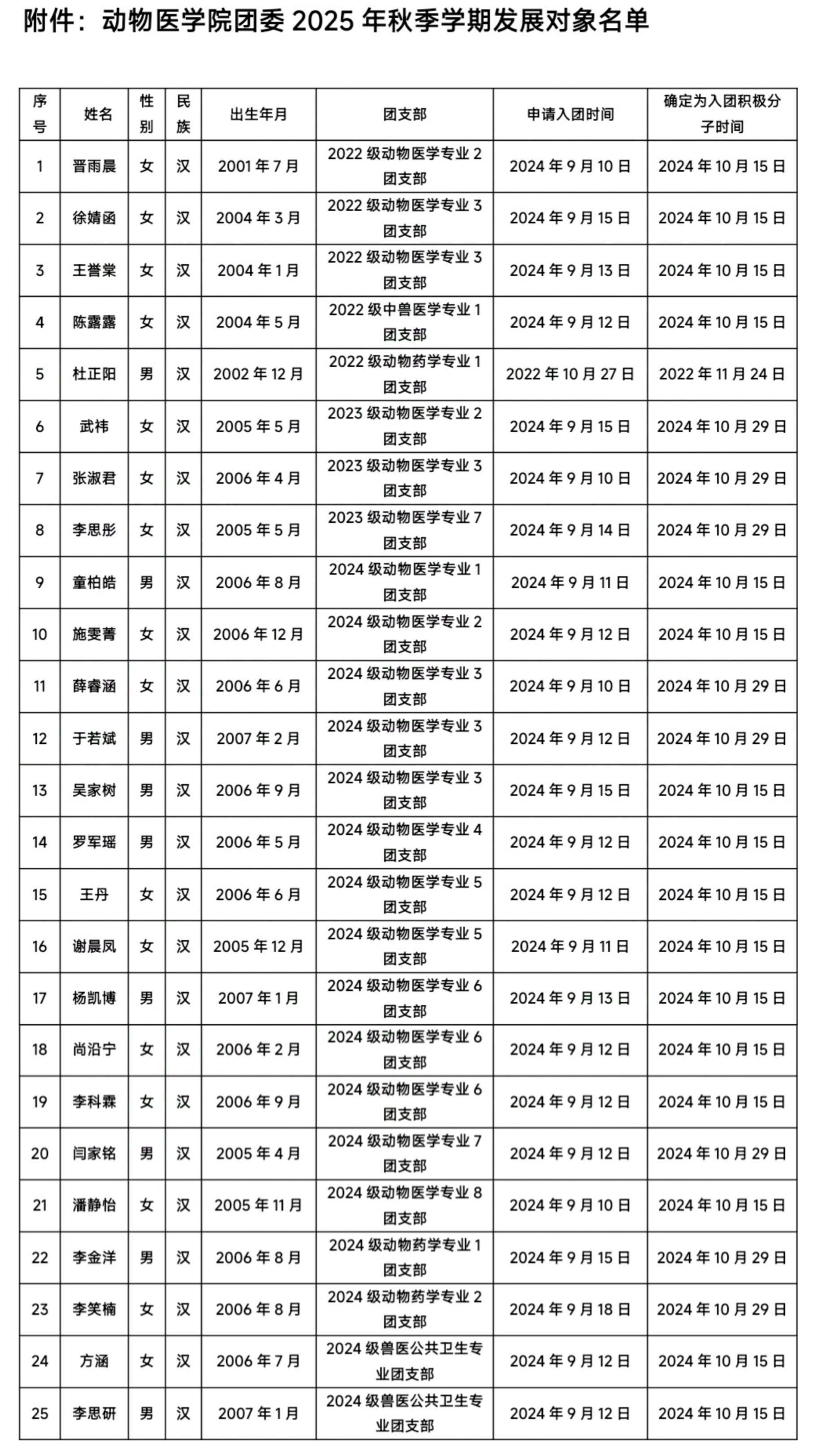 附件:动物医学院团委2025年秋季学期发展对象名单