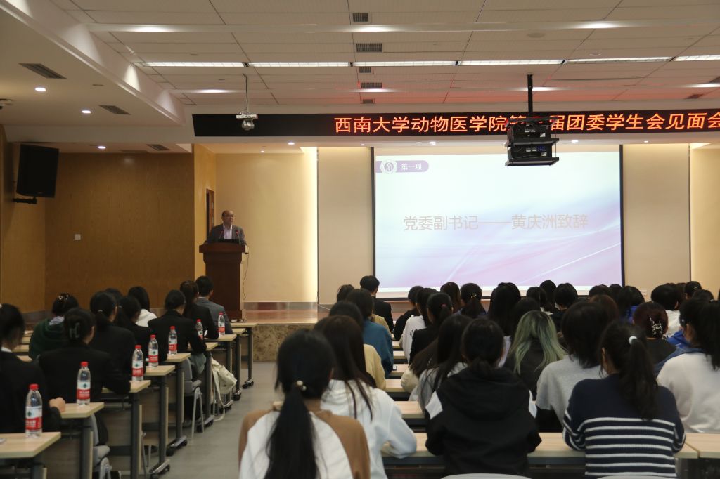 荣昌校区7B101报告厅如期举行。学院党委副书记、纪委书记黄庆洲,团委书记兼学生工作办公室主任刘晓兰,学院评优评奖辅导员、2022级辅导员吴婷芳,学院资助辅导员、2019级辅导员吴秋云,学院安全辅导员、心理健康辅导员、2021级辅导员张秀虹玉出席见面会,学院团委学生会全体成员参加此次见面会。本次会议由学生会执行主席张涛同学主持。