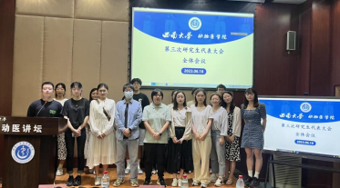 第四届研究生会主席团成员。最后,学院党委副书记罗丹老师讲话,肯定了本学年研会工作取得的各项成绩,对各位成员的辛勤付出表示感谢,并对之后的工作做出殷切希望。