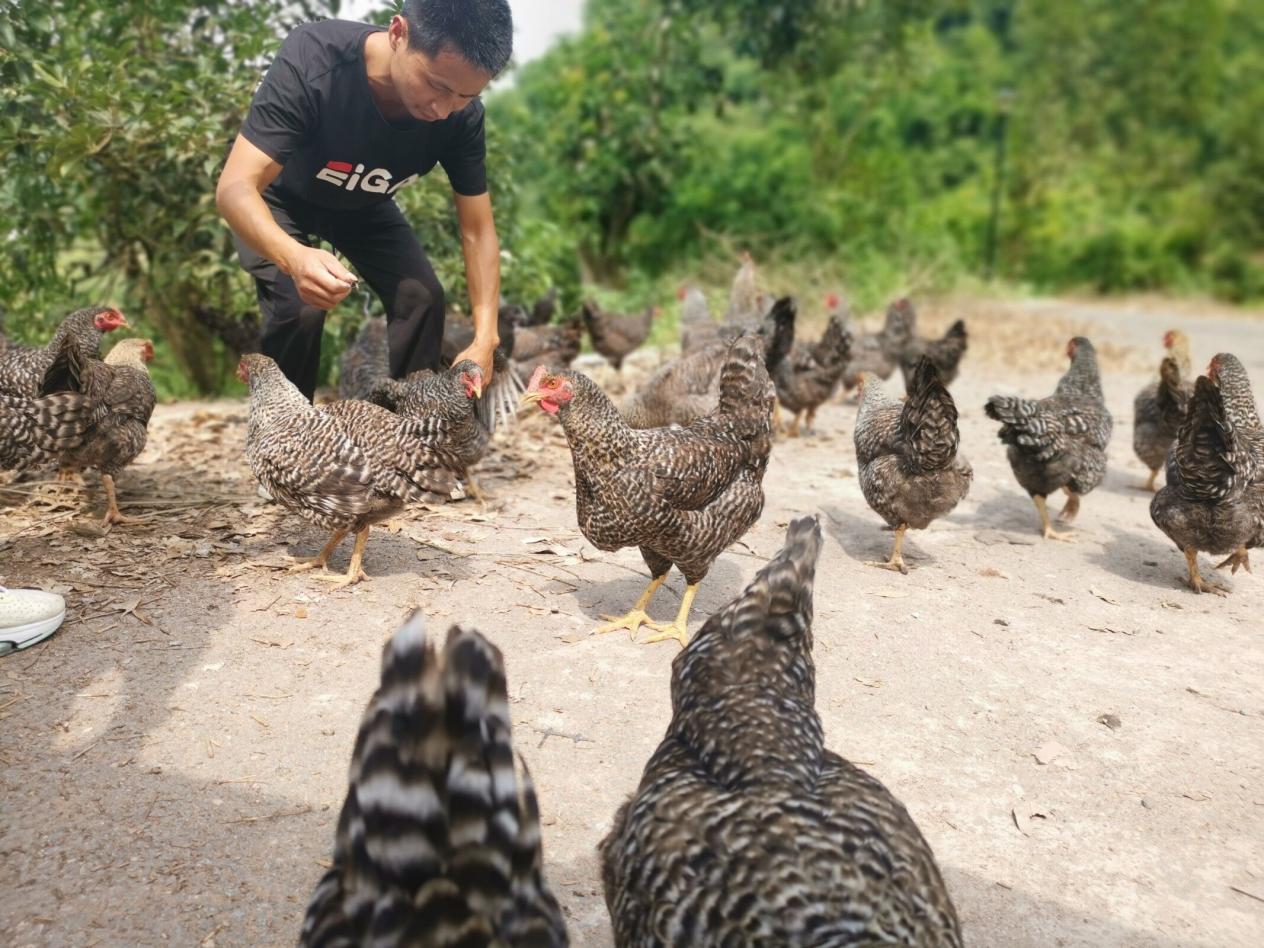 (图3 养殖户展示散养的芦花鸡)