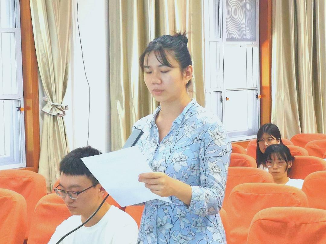 会议开始,全体起立奏唱国歌。第二届院研会主席团成员郭晓奕、姚依然、赵泽民、秘书长蔡霞清依次就个人政治态度、道德品行、学习情况、工作成效作述职汇报,并表达了对院研会的祝愿。随后,组织实践部、综合事务部、学术交流部、文体活动部、新闻宣传部五个部门负责人依次展开述职,总结部门的工作成果,反思工作中存在的不足,提出新学年研会发展的宝贵建议。另外,各部门工作人员对一学年的工作进行简要总结。本次述职评议会总结了本学年工作的经验与不足,为下一阶段工作的开展提供了方向和思路。