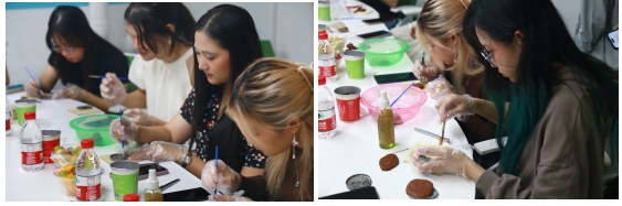 “巧手生花”环节,中泰师生共同制作中国非物质文化遗产——古法香牌,共同感受古法香牌独特的香气和精美的造型,体会中国传统香文化的独特魅力和深厚的文化底蕴。