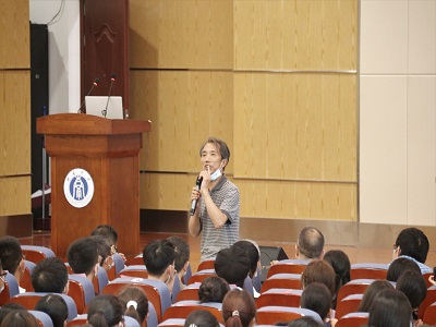 院长刘娟发表讲话,她针对学院办学历史、院系专业、办学条件、师资力量、学科建设、学术研究、科研结果、以及学院所获荣誉等各个方面进行了详细的阐述讲解,并倡议全体师生做一个把“责任举在头顶”、“把百姓装在心中”、“把名利踩在脚下”的具有大格局的人,做好大学的加减乘除,谱写新时代的青春之歌。