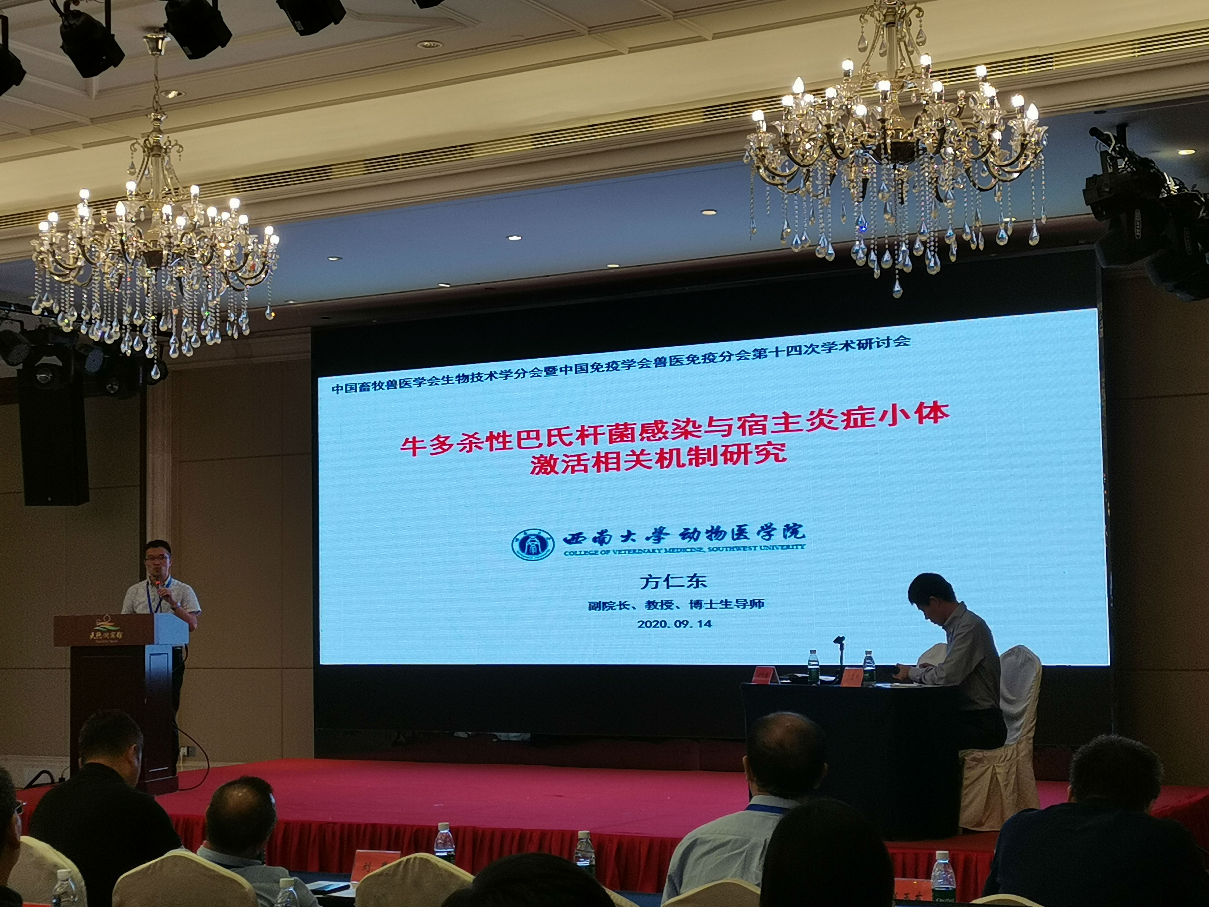 中国畜牧兽医学会生物技术学分会暨中国免疫学会兽医免疫分会第十四次学术研讨会于9月13日至15日在江苏泰州举行。大会由中国畜牧兽医学会生物技术学分会、中国免疫学会兽医免疫分会和中国农业科学院哈尔滨兽医研究所主办,兽医生物技术国家重点实验室等单位承办。来自国内各高校、科研院所的300多位代表参加大会。学院副院长方仁东教授、丁红雷副教授、叶超博士及部分研究生代表参加了此次会议。