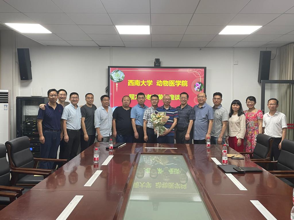 座谈会由黄昌建书记主持。首先程老师回顾了自己从教39年的心路历程,感谢学校、学院各级领导的关心帮助,感恩曾经的前辈们为自己成才的付出,同时勉励年轻老师们潜心教学科研。随后,胡世君老师、黄庆洲副书记、宋振辉副院长、各系主任和教师代表们纷纷发言,无不感谢程老师为学院教学科研事业兢兢业业,做出了大量贡献,也感恩程老师对年轻人的关心和帮助。最后,方仁东副院长和黄昌建书记分别从兽医人的文化传承、教师初心使命、扎根基层投身实践等多角度,代表学院向程老师表达了深深的谢意,同时也恳请程老师荣休后继续关心学院各项事业发展,并祝福老师退休生活多姿多彩、幸福安康!