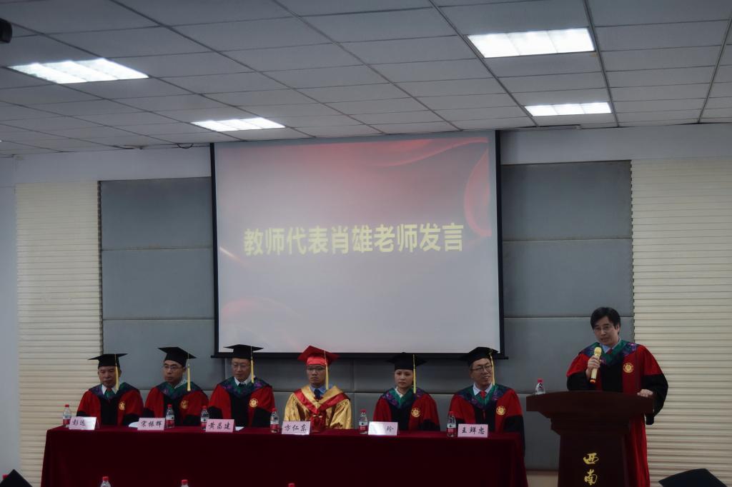 学院教师代表肖雄教授和高继业副教授在发言中向全院毕业生表示祝贺,高老师寄语毕业生要选择感激、选择善良、选择坚持、选择诗和远方,肖老师寄语毕业生要有梦想,敢于竞争、敢于挑战、开拓创新,踏踏实实做事,老老实实做人,成就更大的人生价值。