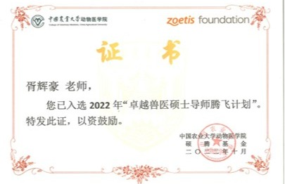 胥辉豪博士成功入选“卓越兽医硕士导师腾飞计划”!