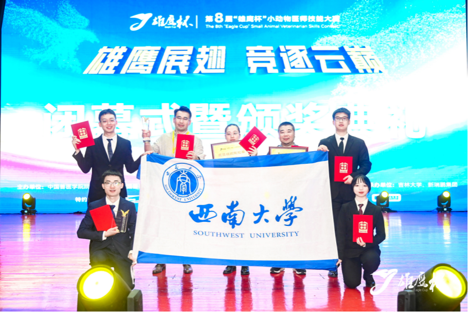 最终,我校学子不负众望,再创辉煌,从全国117所农业高校中脱颖而出,最终以总分第一名的骄人成绩勇夺得第八届“雄鹰杯”小动物医师技能大赛大学生组“团体特等奖”。这也是我校连续第五次蝉联该项赛事特等奖。其中,胥辉豪、张德志、江莎老师获得“优秀辅导教师特等奖”,胥辉豪老师作为优秀辅导老师代表在大赛闭幕式上进行发言;程钏同学获得“兽医新星奖”;我校获得“最佳组织院校奖”。我校在刷新成绩纪录的同时,再次彰显了51风流