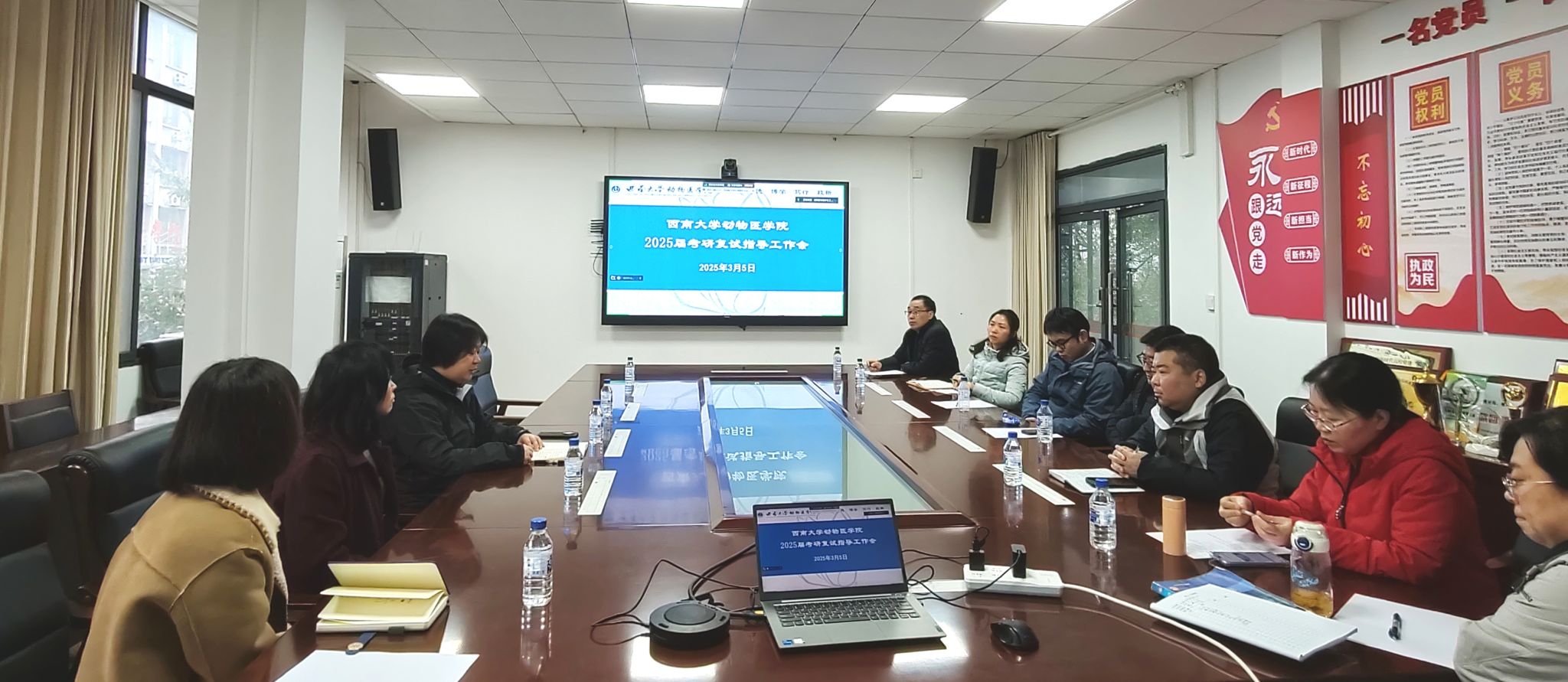 于荣昌校区十教二楼会议室成功召开了2025届考研复试指导工作会。学院党委副书记罗丹、毕业年级辅导员及班主任共同参加,为考研学子的复试之路保驾护航。