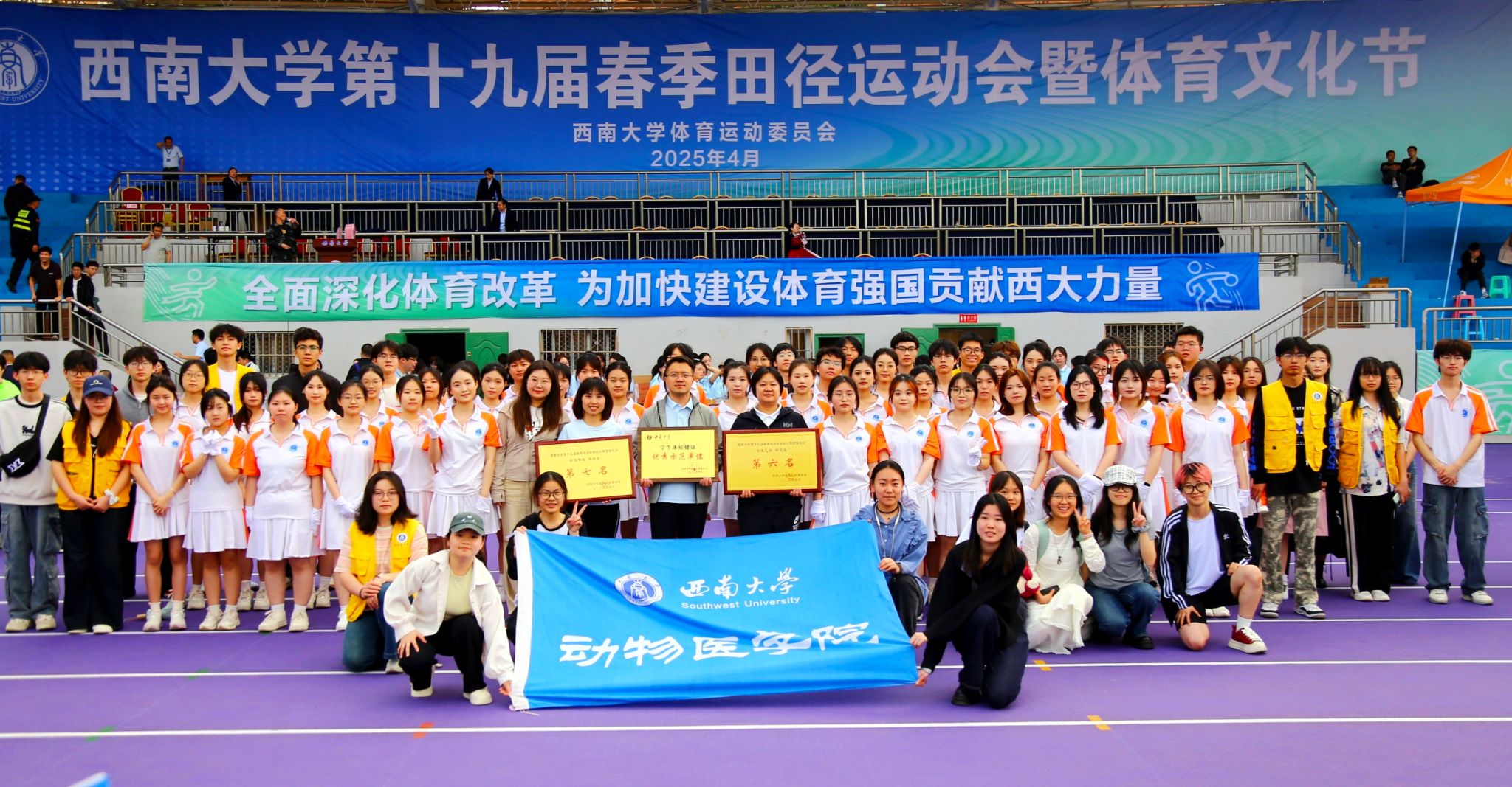 青春不落幕,拼搏永不息。学院师生在本届校运会中用汗水诠释了“更快、更高、更强”的体育精神,用团结书写了“医者仁心,健体报国”的使命担当。赛道终有尽头,但追求卓越的脚步永不停歇——期待明年春日,再次以奔跑之名,赴青春之约,续写属于动医的辉煌篇章!