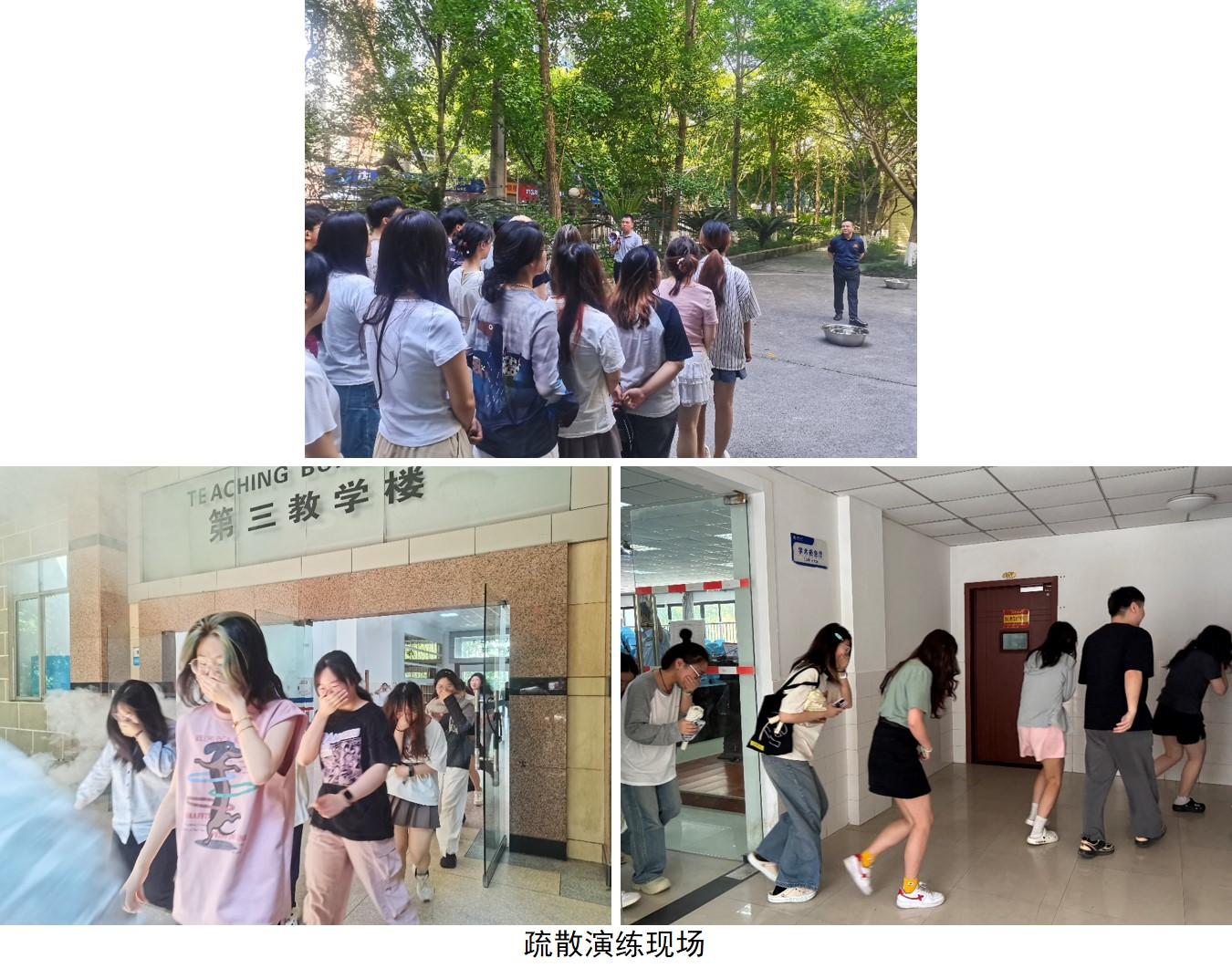 理论培训结束后,学院随即在荣昌和北碚组织开展了紧急疏散实战演练。演练在宋振辉副院长和教员的统一指令下启动。按照既定方案,荣昌参训师生迅速从指定地点进行疏散,北碚参训师生从动物医院报告厅有序疏散撤离。现场各楼层疏散员严格按照预案,指引师生沿最近的安全疏散通道快速、有序撤离至指定集合点。演练过程中,疏散引导人员全程维持秩序,明确指示疏散方向与路径,严格防止师生误入危险区域,坚决杜绝逆向奔跑、推搡、挤压等现象。