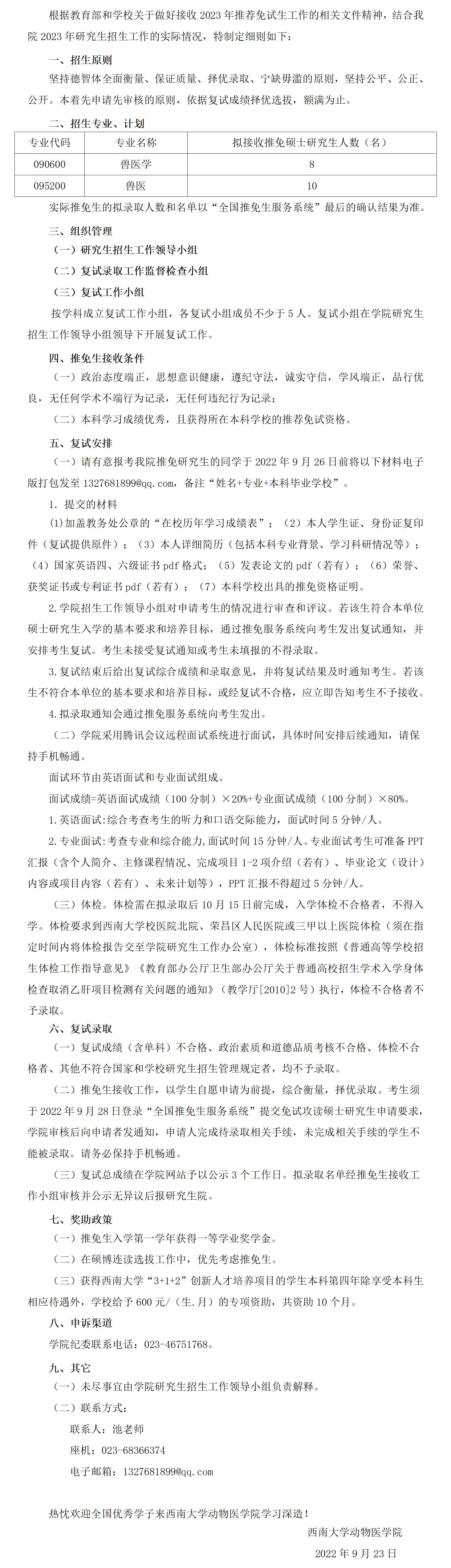 51风流 2023年接收推荐免试研究生复试录取工作细则