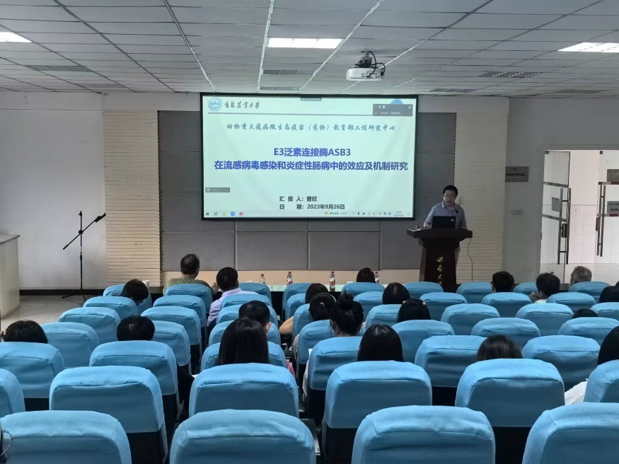 教授、博士生导师曹欣教授来学院开展学术交流,学术沙龙在98教动物医院报告厅和腾讯会议线上线下方式开展,由学院党委委员、彭远义教授主持,学院王鲜忠、孔庆科、王玉娥等教师、研究生等100余人参加了本次报告会。