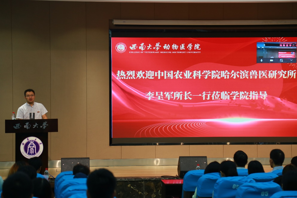 9月11日,中国农业科学院哈尔滨兽医研究所李呈军副所长、高玉龙研究员以及刘益民副院长一行莅临学院指导,并开展学术交流。报告由方仁东院长主持,宋振辉副院长、陶晓奇副院长、以及王玉娥教授等教师代表参加学术交流。